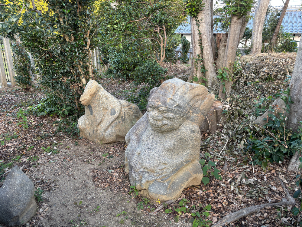 Cuatro estatuas de piedra en el terreno de un túmulo del siglo VII